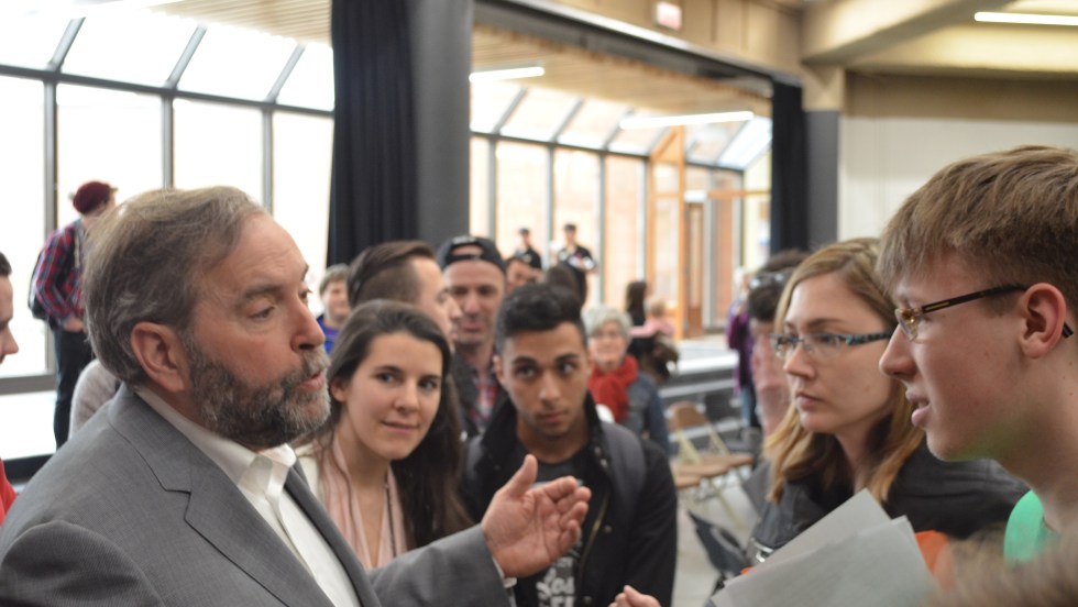Le chef du Nouveau Parti démocratique, Thomas Mulcair, s’est rendu vendredi au cégep John Abbott pour répondre aux questions de plusieurs centaines d’étudiants sur ce que serait l’avenir du Canada