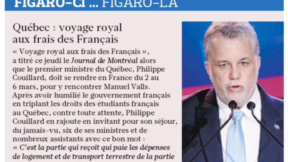 QUÉBEC – Écorché par un quotidien français, le premier ministre Philippe Couillard a déploré, vendredi, la distorsion de ses propos concernant la prise en charge de sa délégation lors d’un