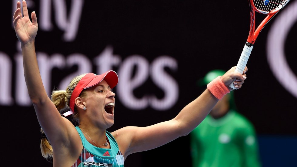 Angelique Kerber a gagné cinq jeux de suite lors de la deuxième manche et a sauvé cinq balles de manche avant de venir à bout de la double championne Victoria