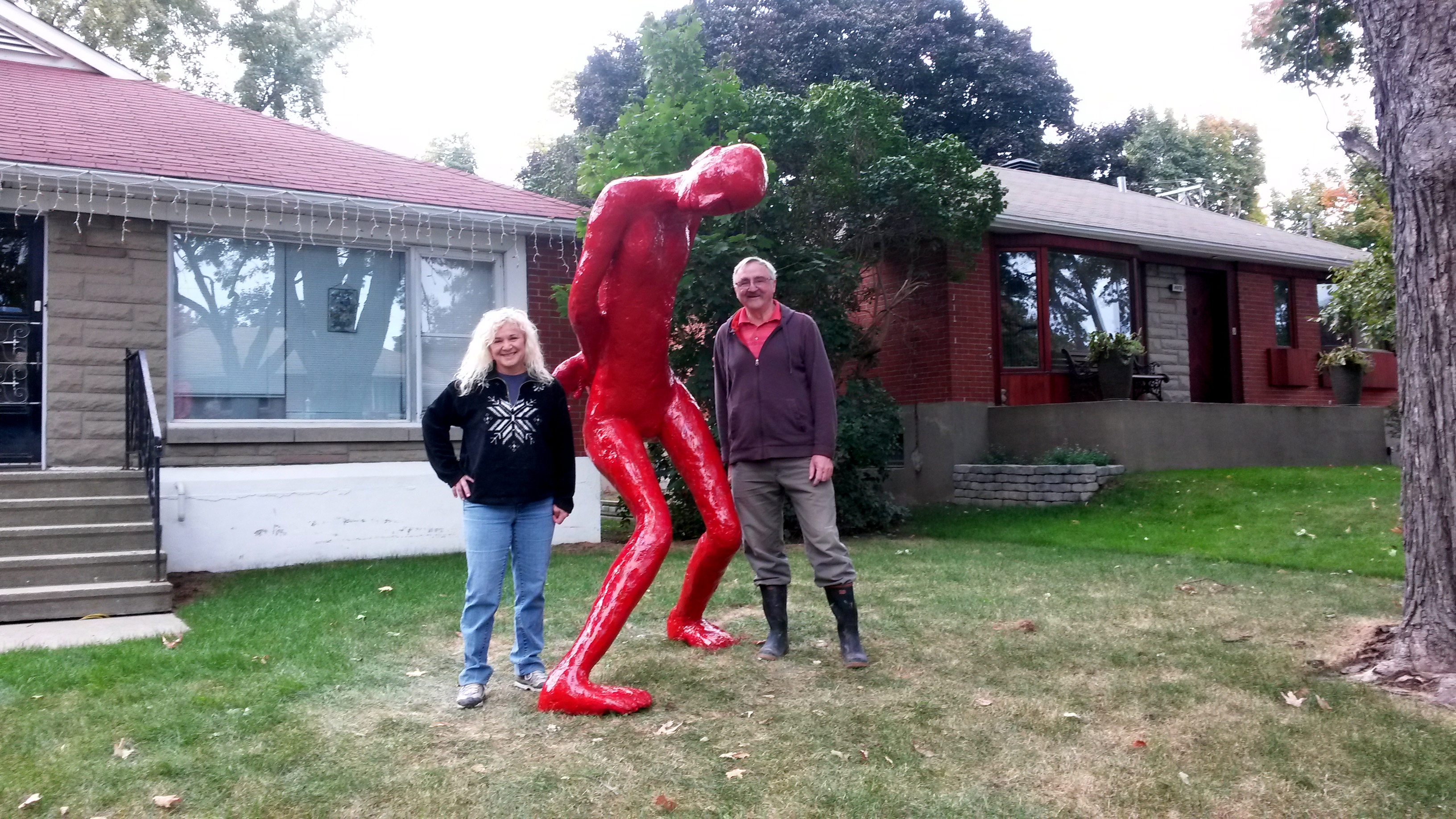 Roland Charneux et sa conjointe Claire Biron sont des amoureux d’art. Dans le cadre des Journées de la culture, ils ont installé une sculpture géante sur leur terrain qui fait sourire bien des gens.