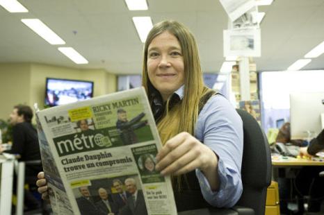 Mélanie Vincelette est une des rares auteures québécoises à être publiée par une maison d’édition française, Robert Laffont. Elle est aussi la directrice générale des éditions Marchand de feuilles. Juste avant de dédicacer son plus récent roman, Polynie, au Salon du livre de Québec ce week-end, Mme Vincelette était de passage dans les bureaux de Métro mercredi soir afin de jouer le rôle de rédactrice en chef invitée. Vous pouvez donc lire dans cette édition ses commentaires sur les nouvelles du jour, en plus d’un texte écrit pour notre page Opinions. Elle a également demandé à notre journaliste Mathias Marchal de préparer un reportage sur l’avenir des langues autochtones.
