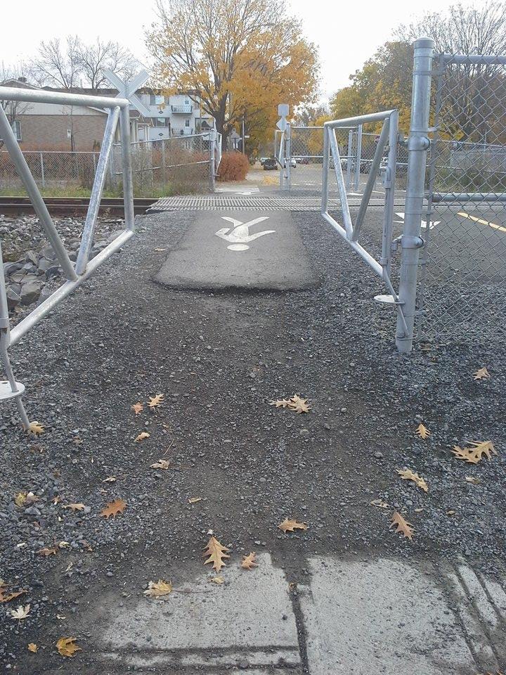 Le maire de l’arrondissement, Réal Ménard, explique que la situation est temporaire : « Les travaux n’ont pas été terminés à cause d’un problème technique. Ils reprendront au printemps. » Le passage à niveau ne serait pas tout à fait aux normes, il va donc être modifié. C’est pourquoi aucun marquage au sol n’a été mis en place.