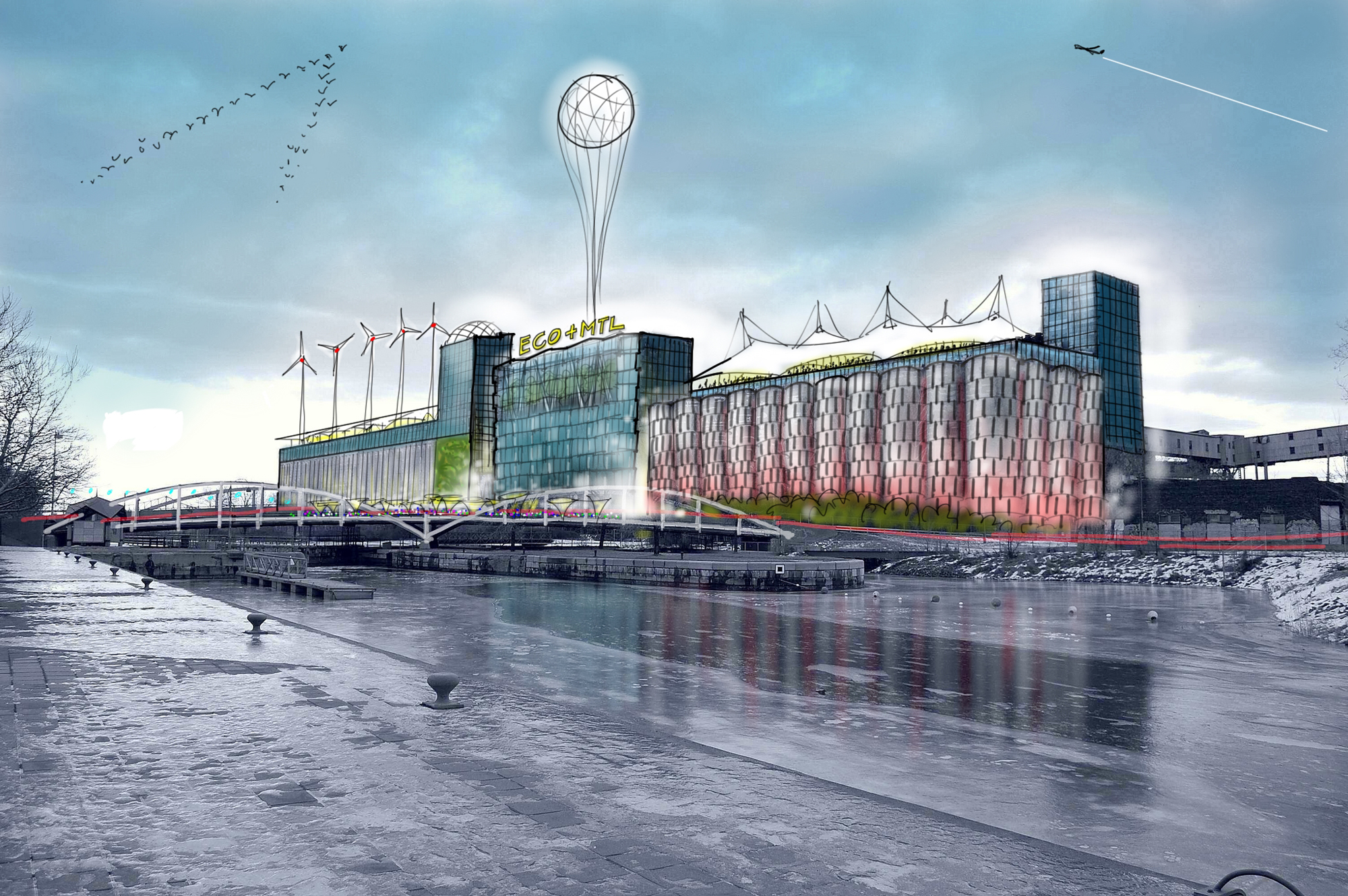 Leur plan: aménager deux vastes esplanades qui reconnecteraient le site industriel à la rue de la Commune, au bout desquelles serait implanté un marché public. Les silos du côté ouest, ainsi que la structure métallique centrale, seraient convertis en hôtel, alors que les silos du côté est – la section la plus emblématique du site – accueilleraient un centre d’innovation gouvernemental sur le développement durable, un observatoire et une salle de réception.