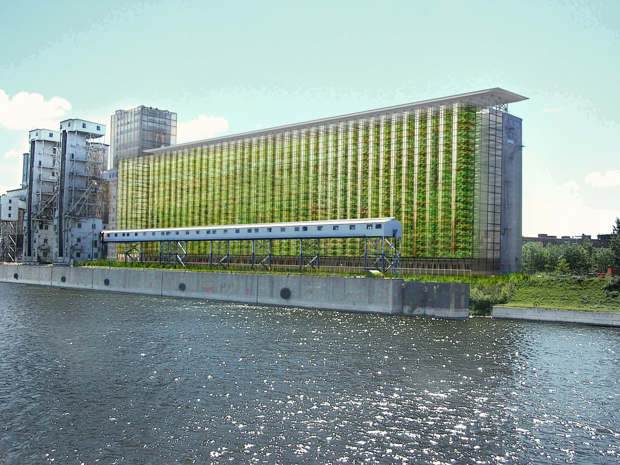 Une entreprise d’agriculture urbaine viendrait «habiller» une partie des cylindres bétonnés en y adossant une gigantesque serre vitrée qui serait destinée à la culture de fruits et légumes. Ces derniers seraient vendus au marché public.