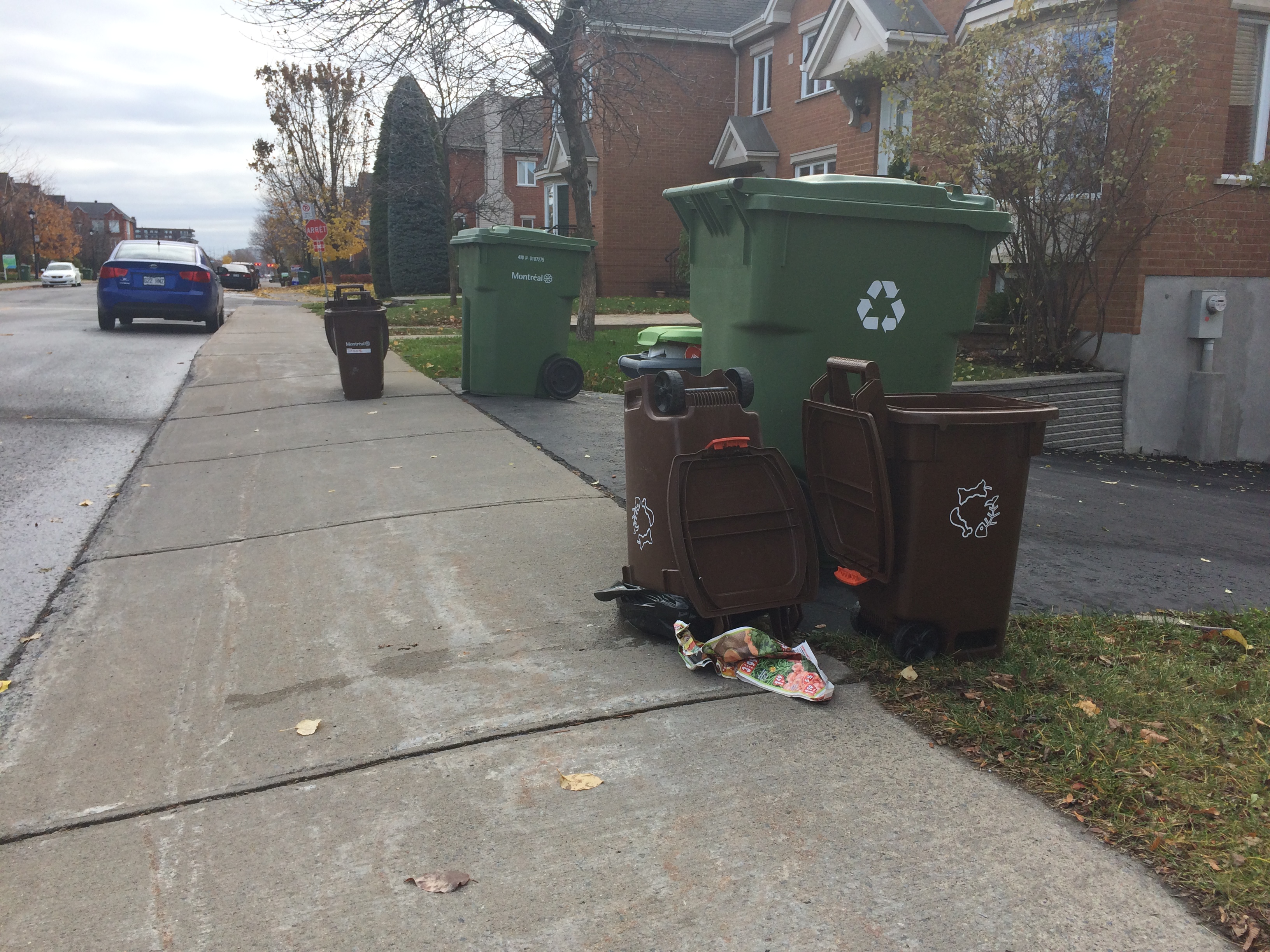 Toutefois, dans le projet résidentiel Anjou-sur-le-Lac, plusieurs bacs bruns étaient toujours présents sur les rues du secteur.