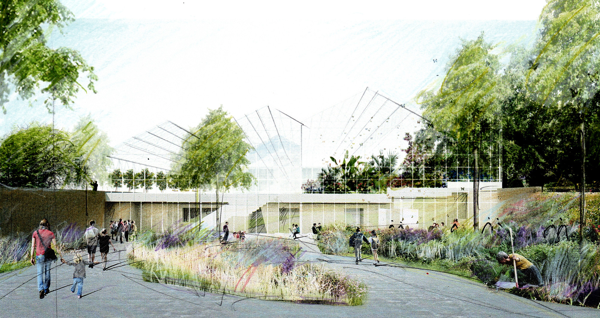 Concrètement, le visiteur sera progressivement isolé du contexte urbain pour s’infiltrer sous terre, dans la pénombre et l’humidité, où vivent des milliers de petites bêtes. Plus loin, entre les espaces éducatifs et immersifs, la lumière jaillira en pénétrant dans le jardin des papillons, qui se trouvera sous une immense serre de verre.