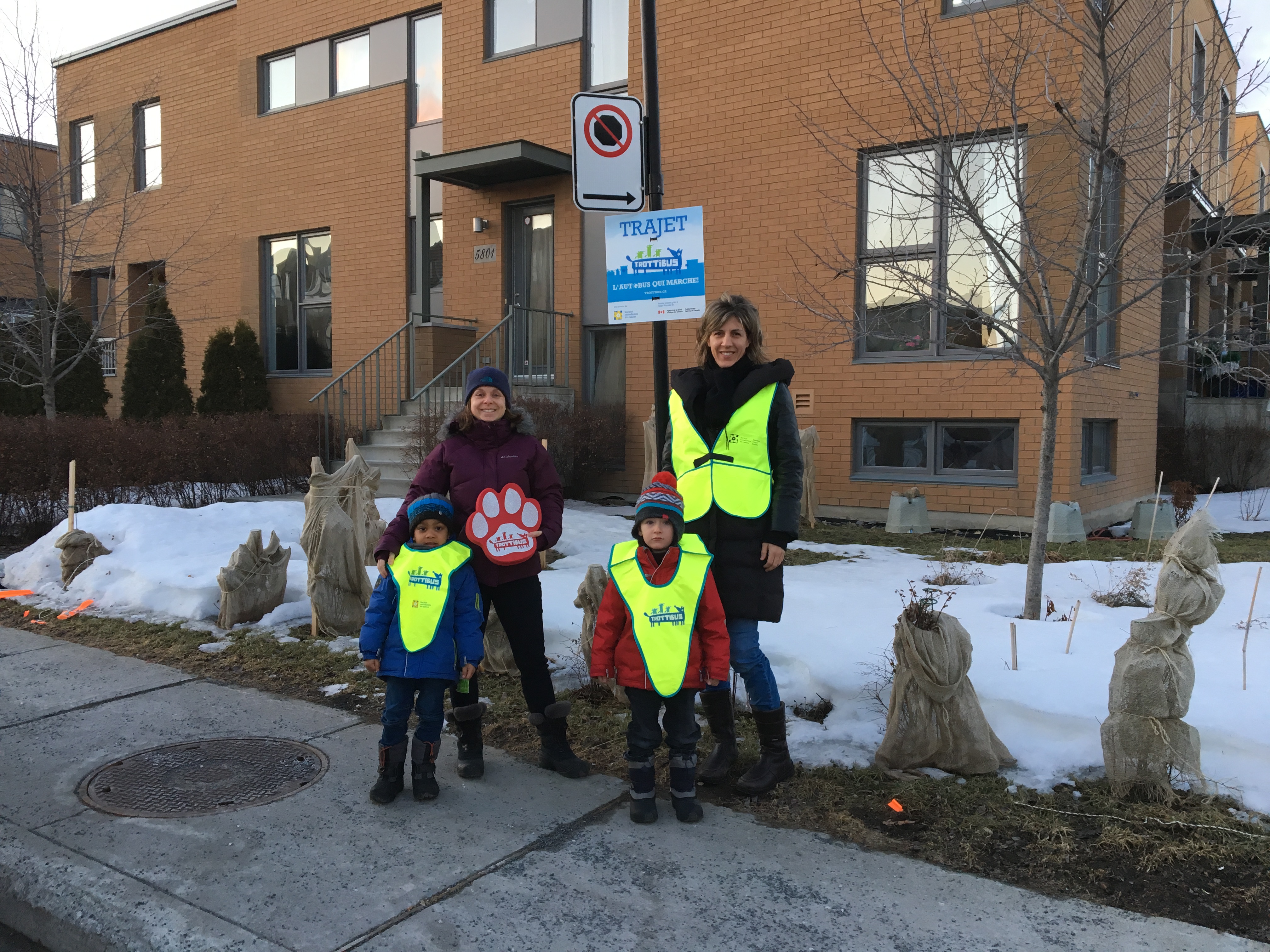 Des panneaux avisant les automobilistes de la présence d’un trottibus dans leur secteur ont été installés pour les inciter à redoubler de prudence dans leur déplacement.