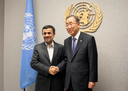 Pour tenter de trouver une issue à la crise syrienne, le secrétaire général de l’ONU, Ban Ki-Moon s’est même montré complaisant avec le président iranien Mahmoud Ahmadinejad, allié indéfectible de Damas, qu’il a invité à prouver le caractère pacifique de son programme nucléaire. Alors que Londres, Paris, Berlin ont demandé officiellement que de nouvelles sanctions soient prises contre Téhéran.