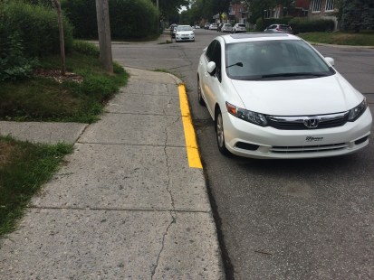 L’arrondissement rappelle que les fameuses bandes jaunes en bordure du trottoir sont une aide visuelle pour les automobilistes.