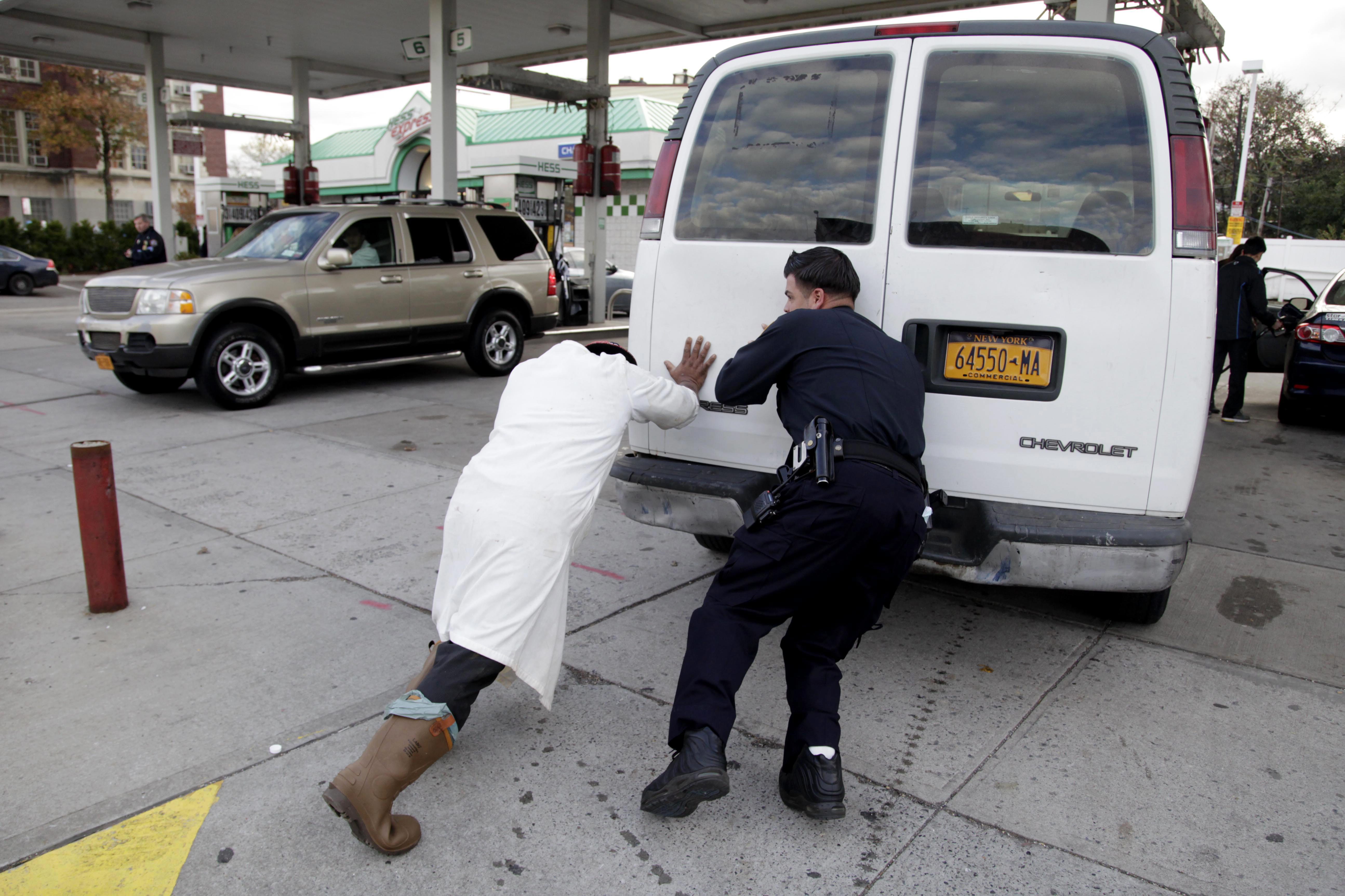 À Paterson, dans le New Jersey, la troisième ville la plus populeuse de l’état, le service de police tentait de négocier des contrats d’urgence pour alimenter sa flotte. S’il n’y arrivait pas, il envisageait de commencer à siphonner les réservoirs d’essence d’autres véhicules municipaux pour alimenter les voitures de police. Dans le comté d’Essex, dans l’état de New York, les autorités exigent maintenant que les véhicules d’urgence (voitures de police et camions de pompiers) ne soient remplis qu’à la moitié du réservoir. Le gouverneur de l’état du New Jersey a levé les restrictions sur l’achat de carburant des états voisins et le président Obama, par l’entremise du ministère de la Défense, a déjà envoyé 250 000 gallons de diesel et en a promis 500 000 autres.