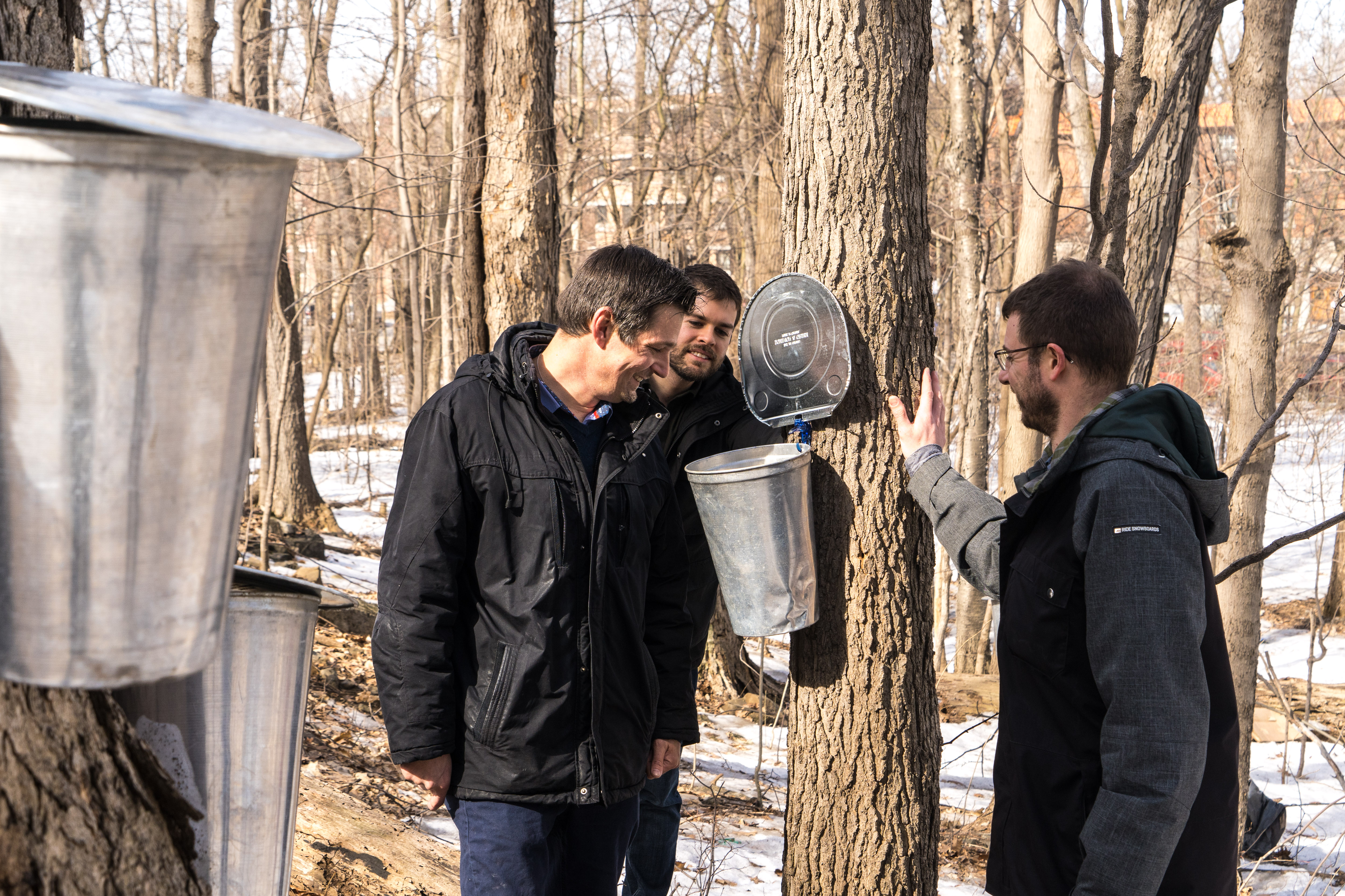 «Avec des arbres de près de 300 ans, c’est une forêt comme celle-là que Jacques-Cartier a dû voir en arrivant», mentionne M. Beaudoin. Il a donc entaillé une quinzaine d’érables, espérant ainsi sensibiliser la communauté universitaire à l’importance des parcelles forestières de toutes tailles, comme cette érablière à caryer qui héberge notamment la salamandre cendrée.
