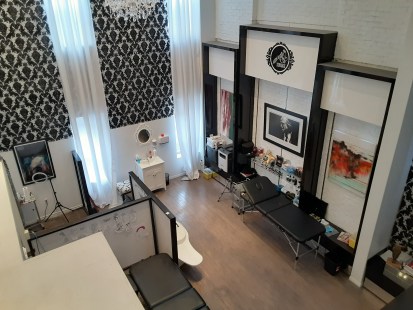 Ses tatoueurs professionnels, Marie-Pier (black work – minimalisme), London (dark réalisme) et Macdie (versatile, toujours en délicatesse) sauront répondre à vos attentes – voire les surpasser!