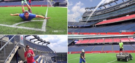 Des tirs du haut des estrades, des frappes aériennes, des attrapés fantasmagoriques et beaucoup de testostérone, voici ce qui arrive quand vous laisser 5 maniaques de sport prendre d’assaut le Gillette Stadium.