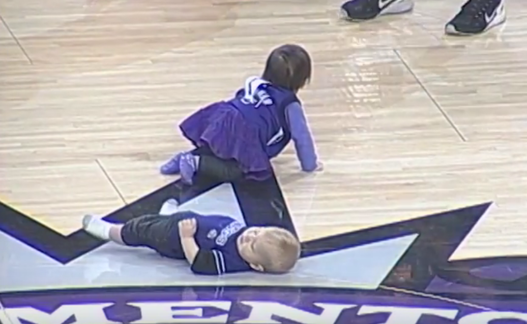 Les Kings de Sacramento, dans la NBA, s’adonnent à une tradition encore plus cute: la course de bébés. Des poupons doivent traverser le terrain le plus rapidement possible. Comme ils n’ont absolument aucune idée de ce qu’ils doivent faire, ou pourquoi il y a une bande d’idiots d’adultes un peu chaudaille qui les encouragent, le résultat est plutôt drôle. Surtout quand un des bébés décide de faire un petit somme en plein milieu de la course.