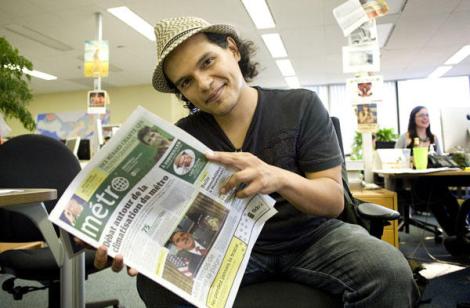 Au lendemain du lancement de son premier CD, Monde, le comédien et musicien Luis Oliva a passé la soirée dans la salle de rédaction de Métro mercredi afin de jouer le rôle de rédacteur en