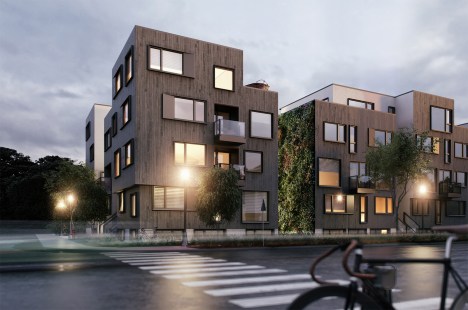 Kanva a également fait une croix sur les façades en maçonnerie normalement exigées par l’arrondissement. Elle les a remplacées par de l’acrylique et du bois de cèdre carbonisé, une technique d’origine japonaise, réinterprétée par les Scandinaves pour un climat nordique. «On cherchait des matériaux innovants, écologiques et uniques, poursuit l’architecte. Le projet se trouvera tout juste à l’entrée de Verdun [à l’angle des rues de Verdun et Henri-Duhamel]. On a la responsabilité de bien représenter l’arrondissement, de faire quelque chose de significatif.»